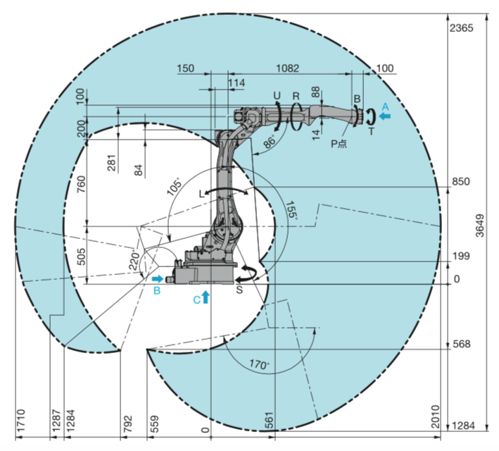 每一臺工業(yè)機器人都有最大的運動范圍和可以到達最遠的距離,這時候就需要考慮它的運動范圍是不是符合自己的需求。