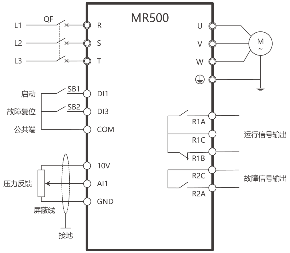 雖然水泵在低速運(yùn)行時,電動機(jī)的工作電流較小。但是,當(dāng)用戶的用水量變化頻繁時,電動機(jī)將處于頻繁的升、降速狀態(tài),而升、降速的電流可略超過電動機(jī)的額定電流,導(dǎo)致電動機(jī)過熱。因此,電動機(jī)的熱保護(hù)是必需的。對于這種由于頻繁地升、降速而積累起來的溫升,變頻器內(nèi)的電子熱保護(hù)功能是難以起到保護(hù)作用的,所以應(yīng)采用熱繼電器來進(jìn)行電動機(jī)的熱保護(hù)。
