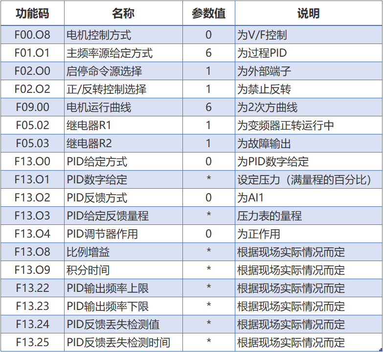 在主要功能預(yù)置方面,最高頻率應(yīng)以電動機(jī)的額定頻率為變頻器的最高工作頻率。升、降速時間在采用變頻器內(nèi)置PID調(diào)節(jié)。升、降速時間應(yīng)盡量設(shè)定得短一些,以免影響由PID調(diào)節(jié)器決定的動態(tài)響應(yīng)過程。控制原理如下: